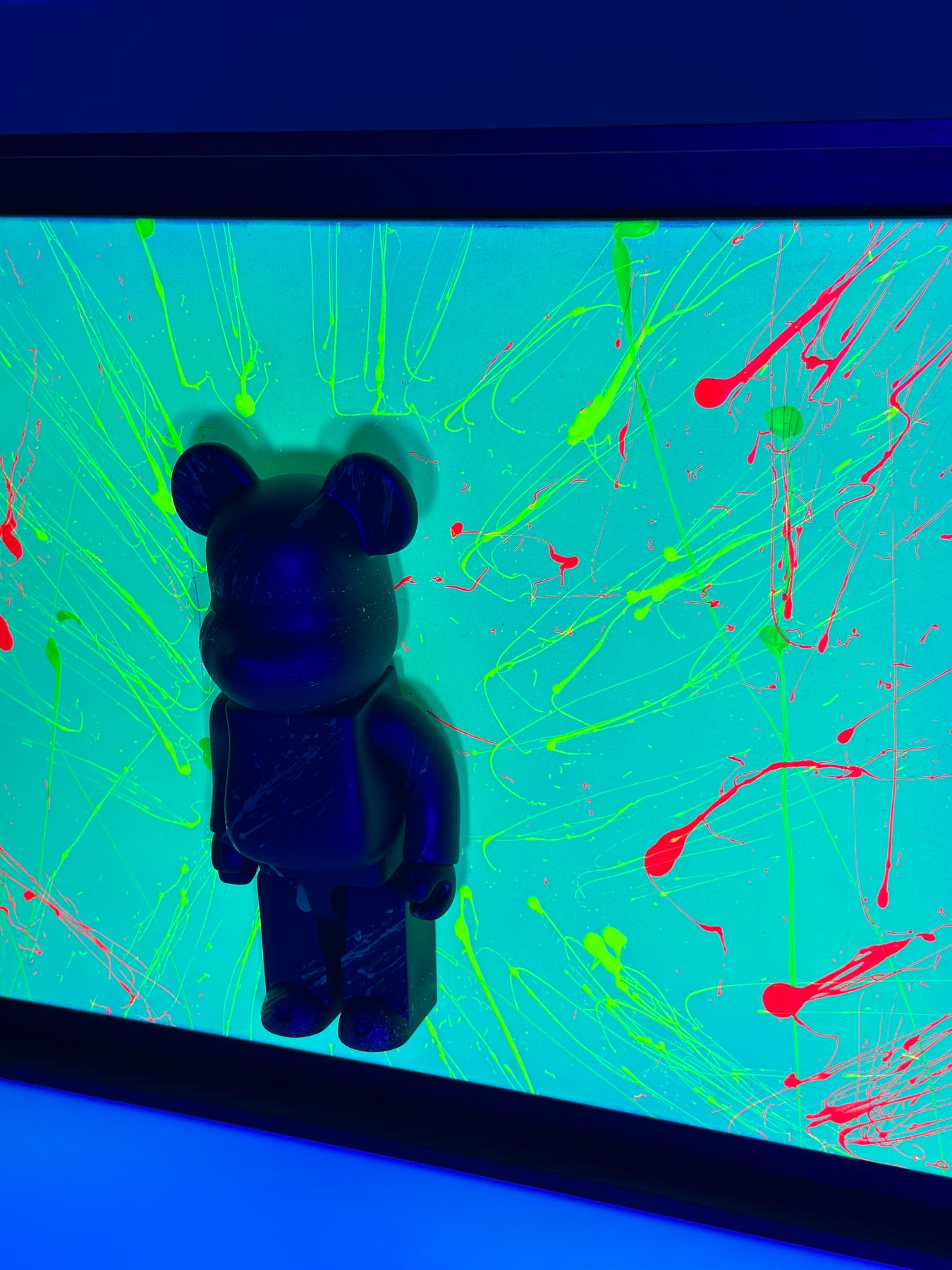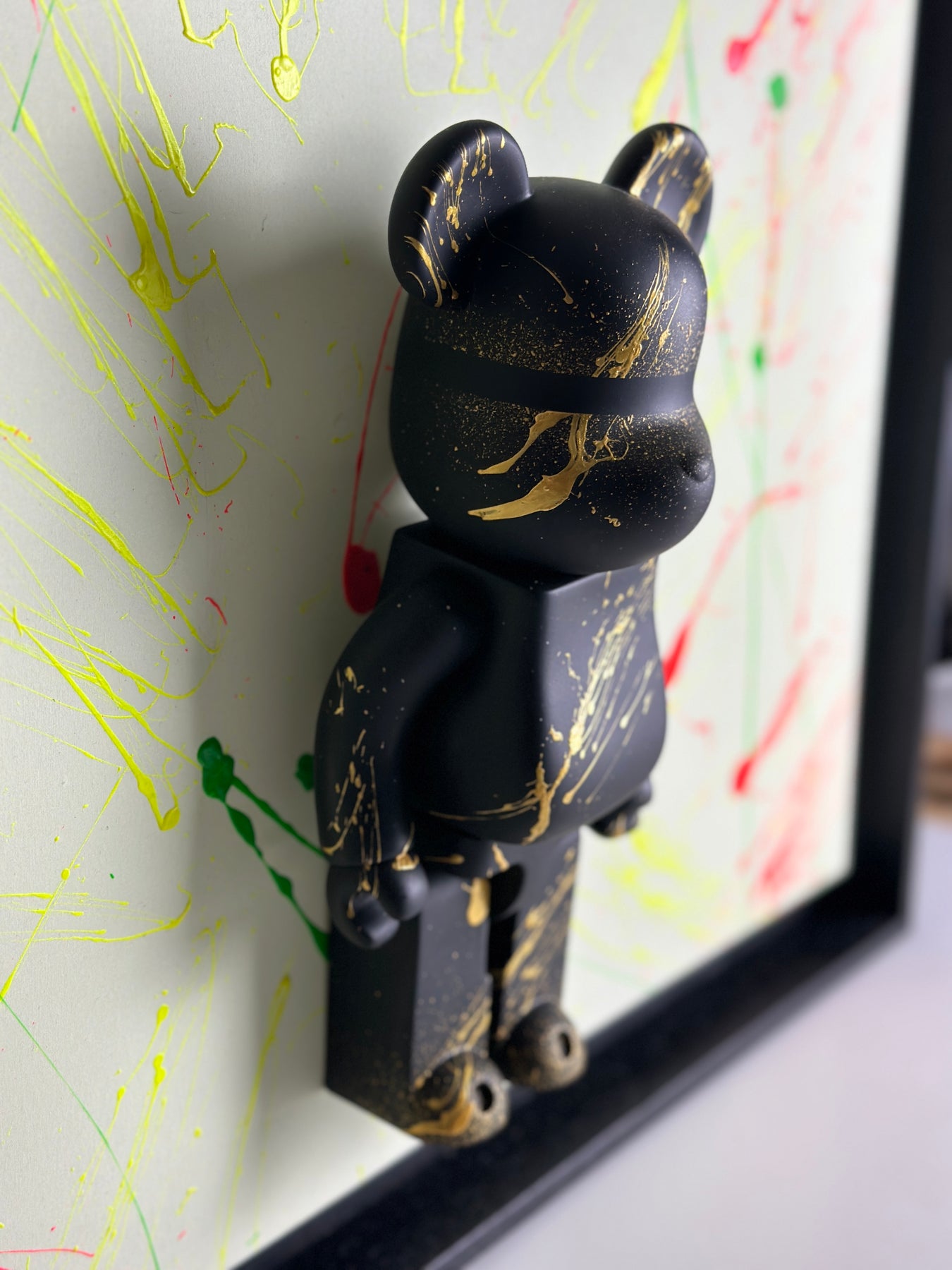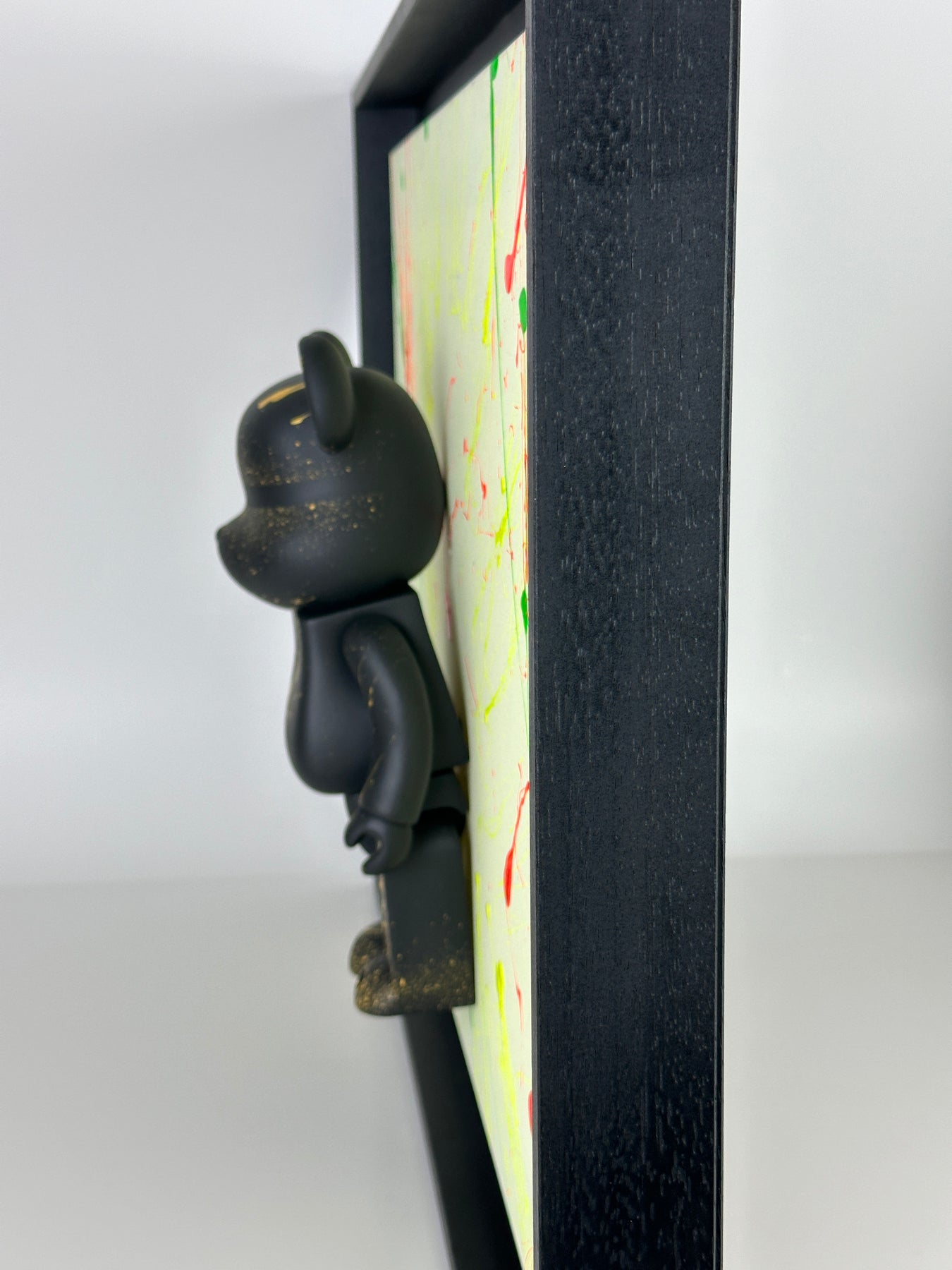 "ANZA" quadro UNICO realizzato su tela di cotone fine colori FLUO con l'applicazione di questo teddy CUSTOM.