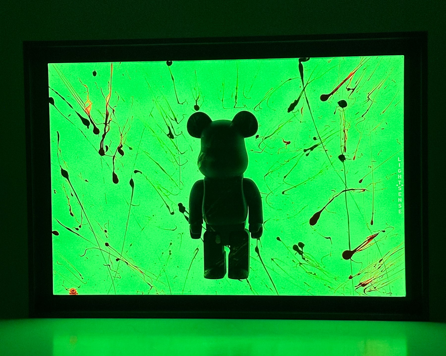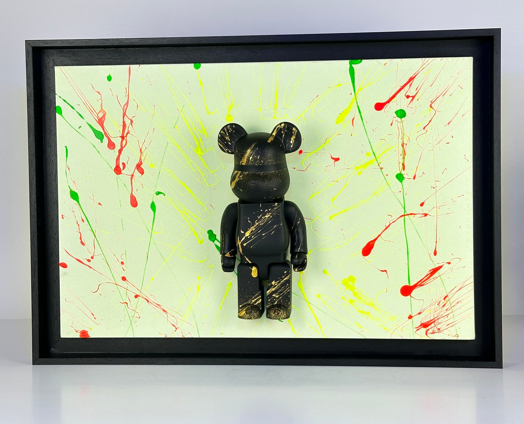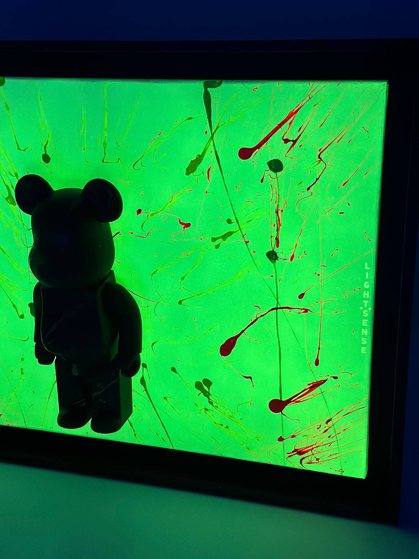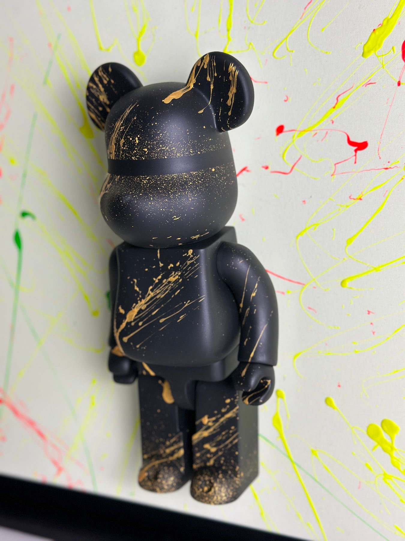 "ANZA" quadro UNICO realizzato su tela di cotone fine colori FLUO con l'applicazione di questo teddy CUSTOM.