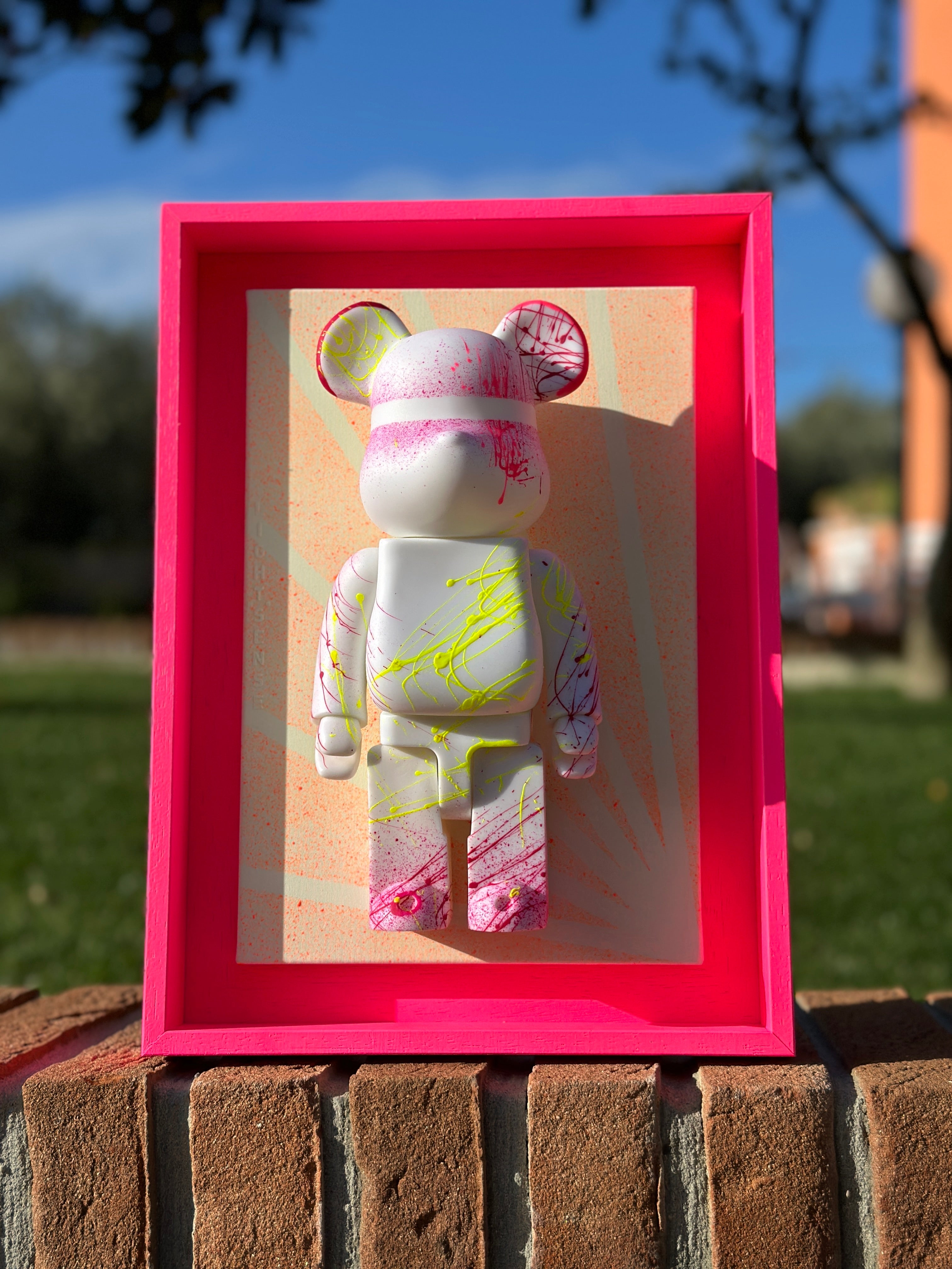 "GOLD" quadro UNICO realizzato su tela di cotone fine colori FLUO con l'applicazione di questo Teddy CUSTOM.