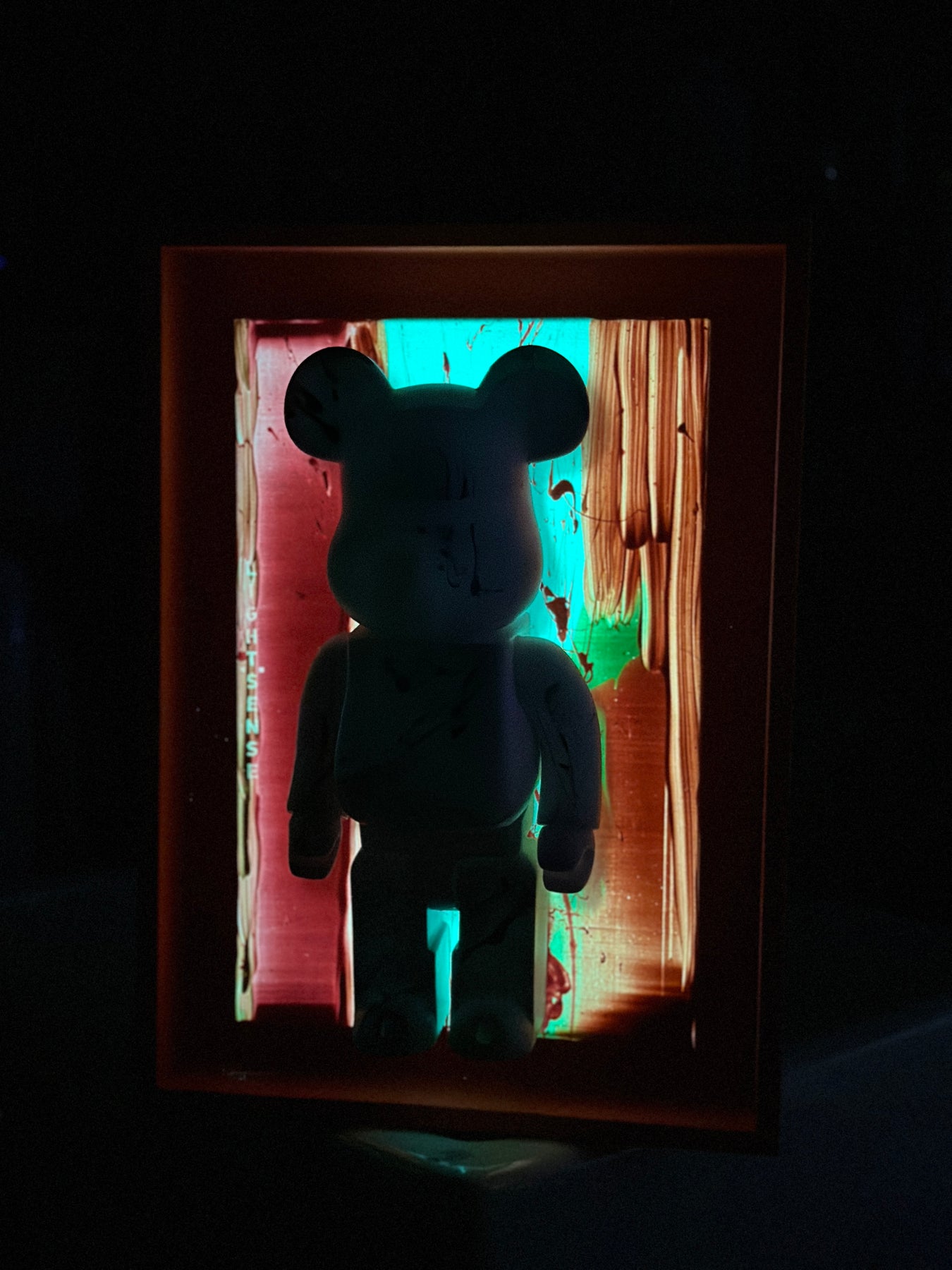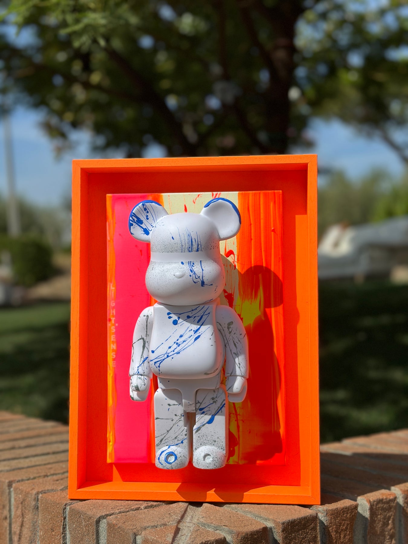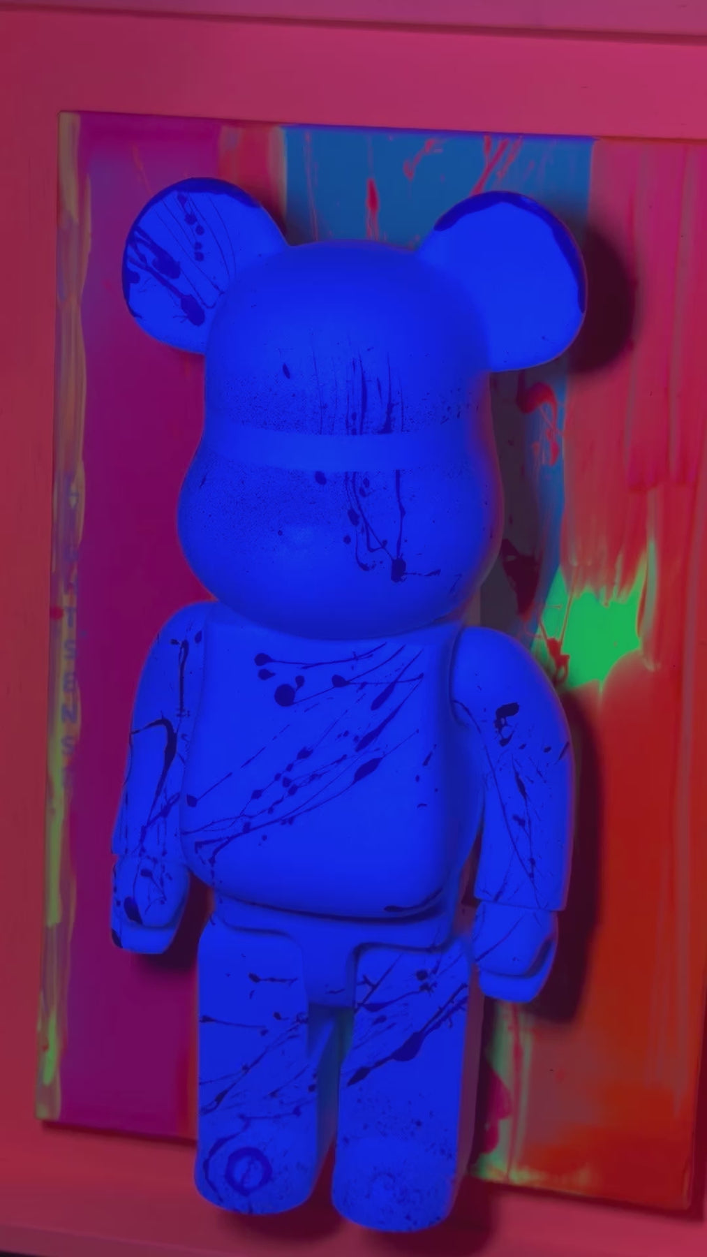 “LINO” quadro UNICO realizzato su tela di cotone fine colori FLUO con l'applicazione di questo teddy CUSTOM.