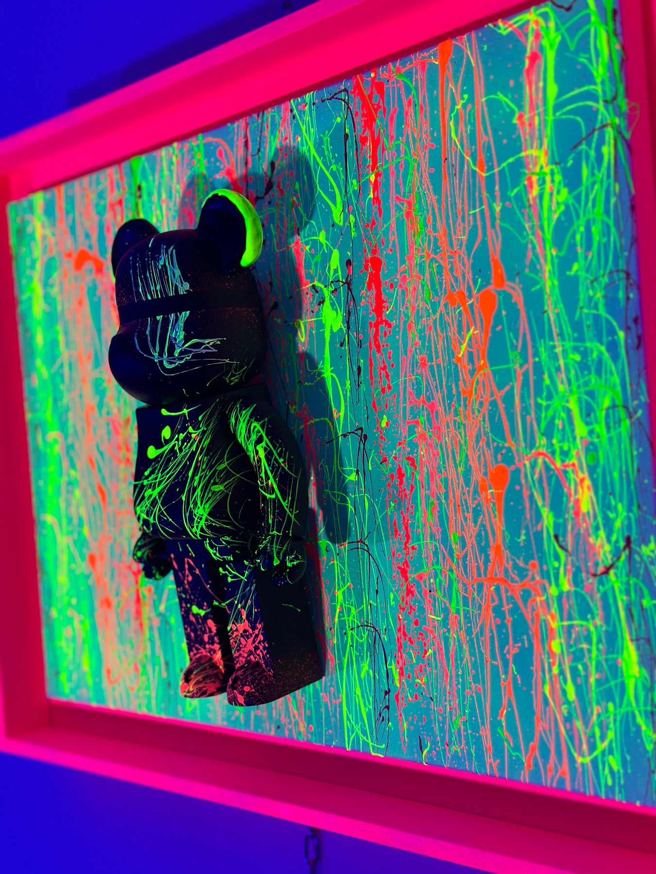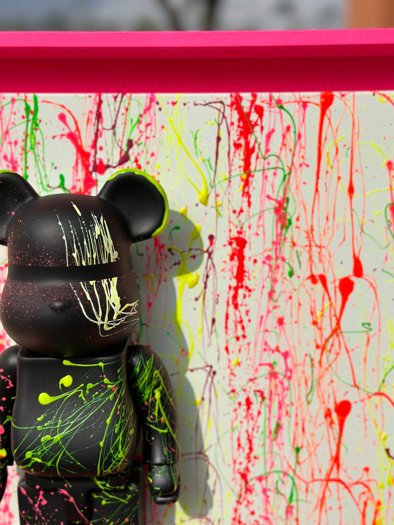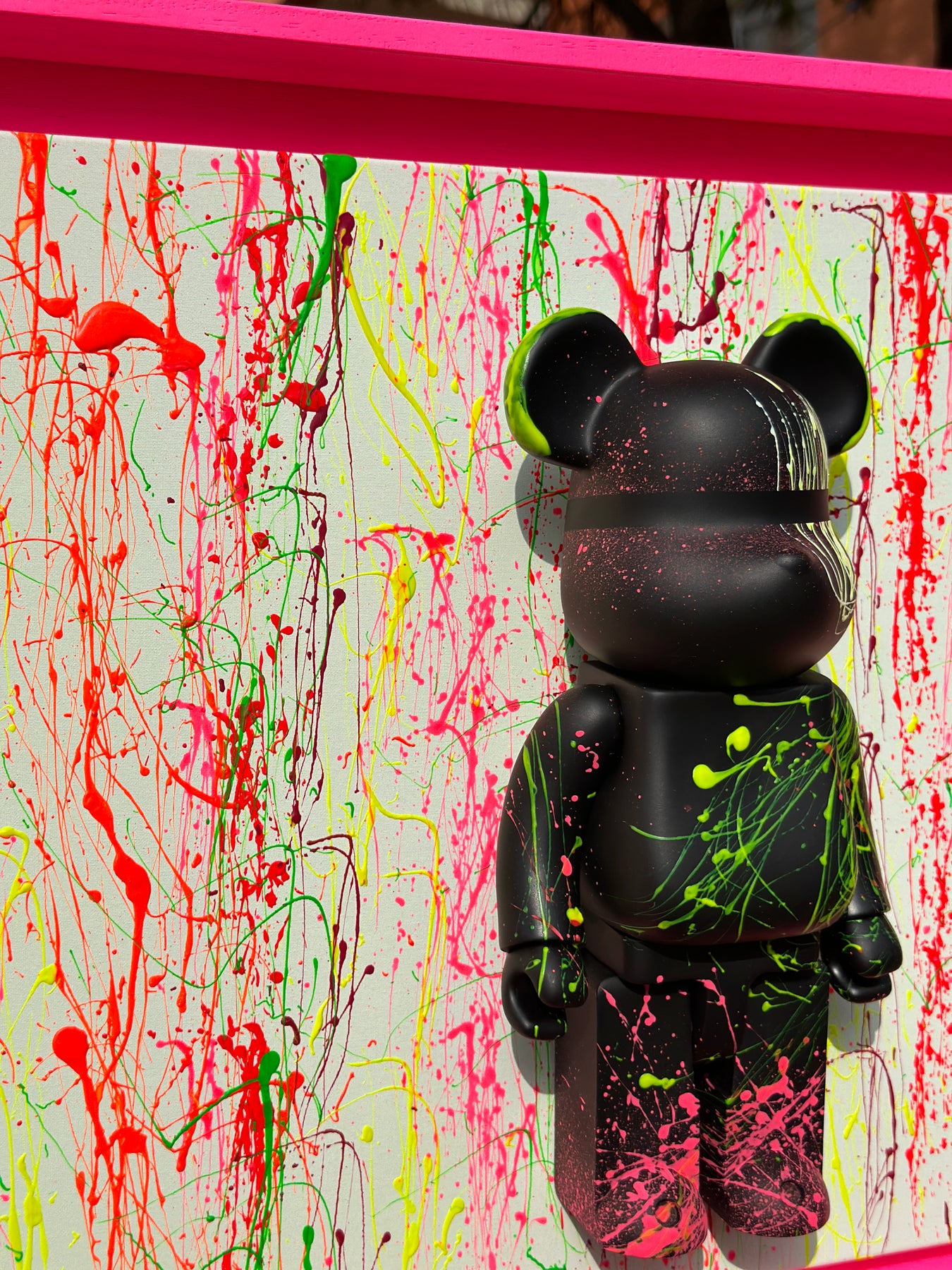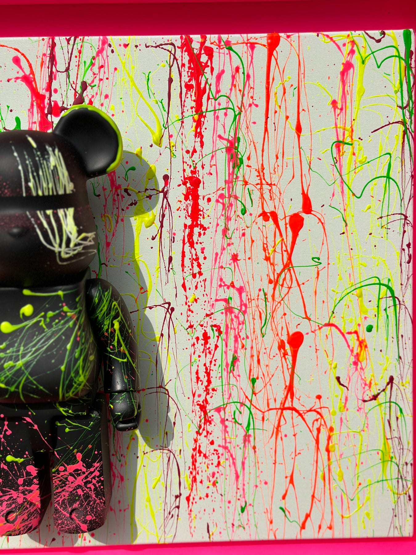 "MENK" quadro UNICO realizzato su tela di cotone fine colori FLUO con l'applicazione di questo Teddy CUSTOM.
