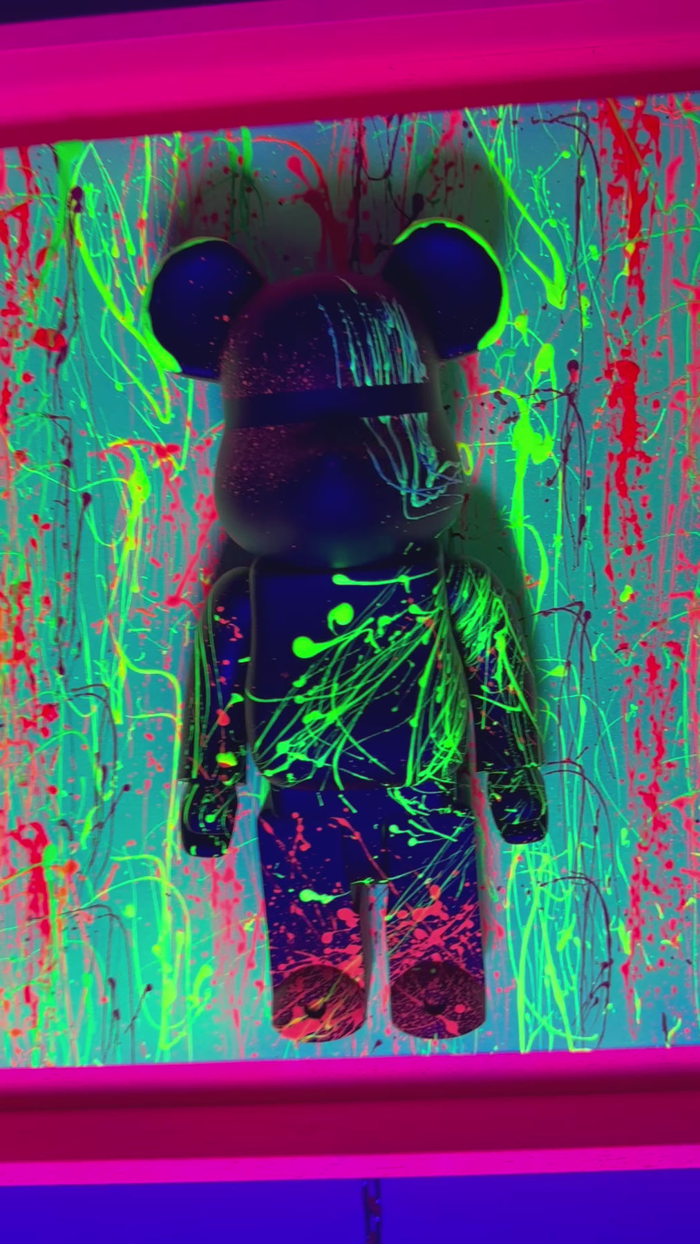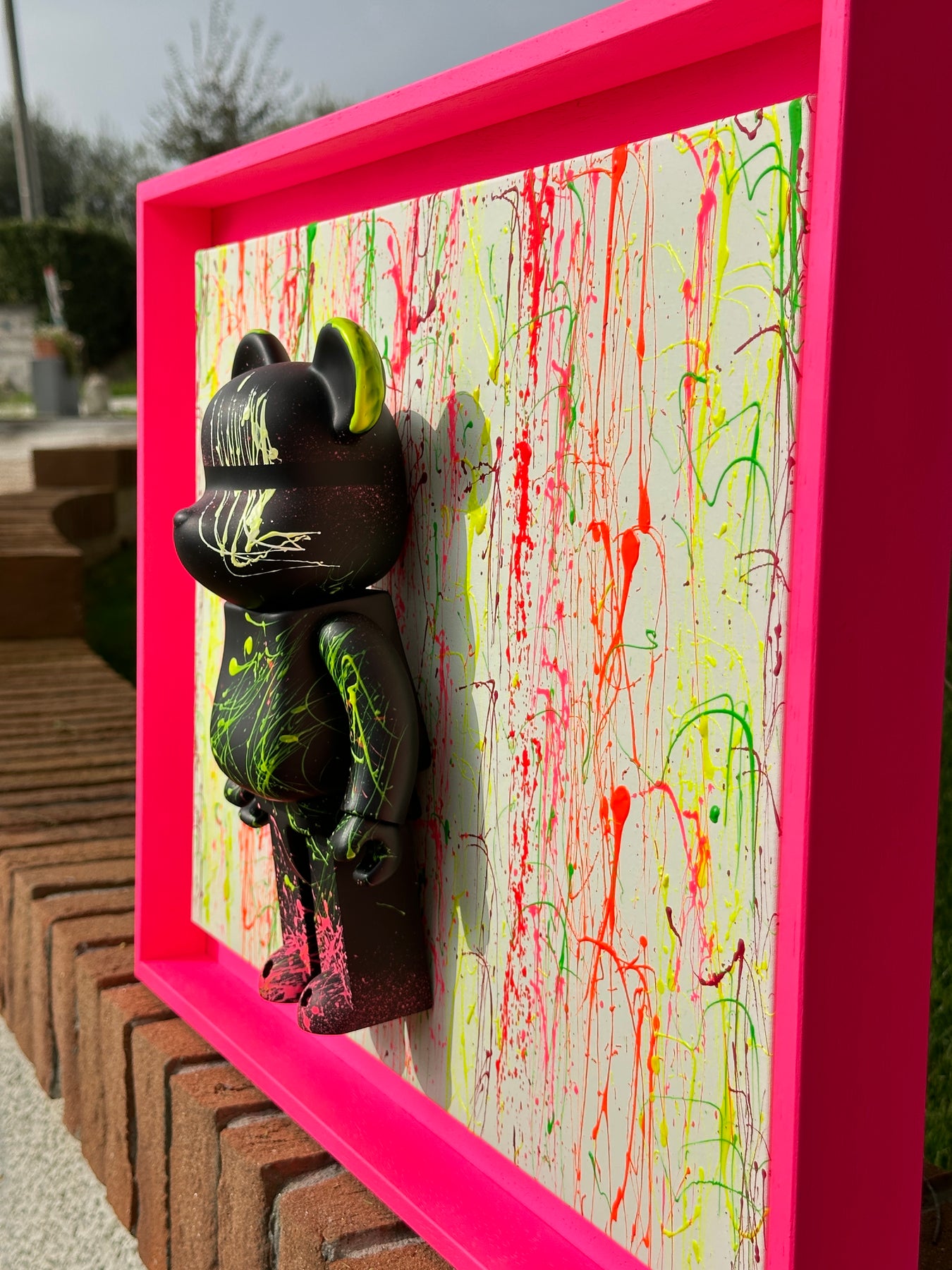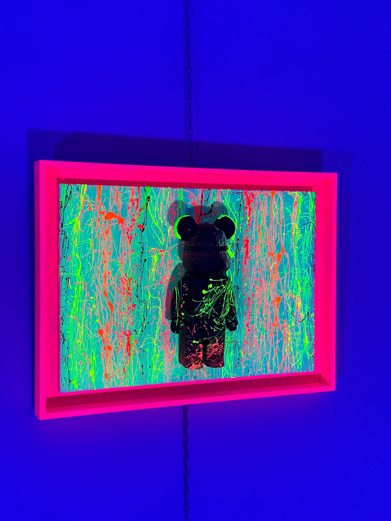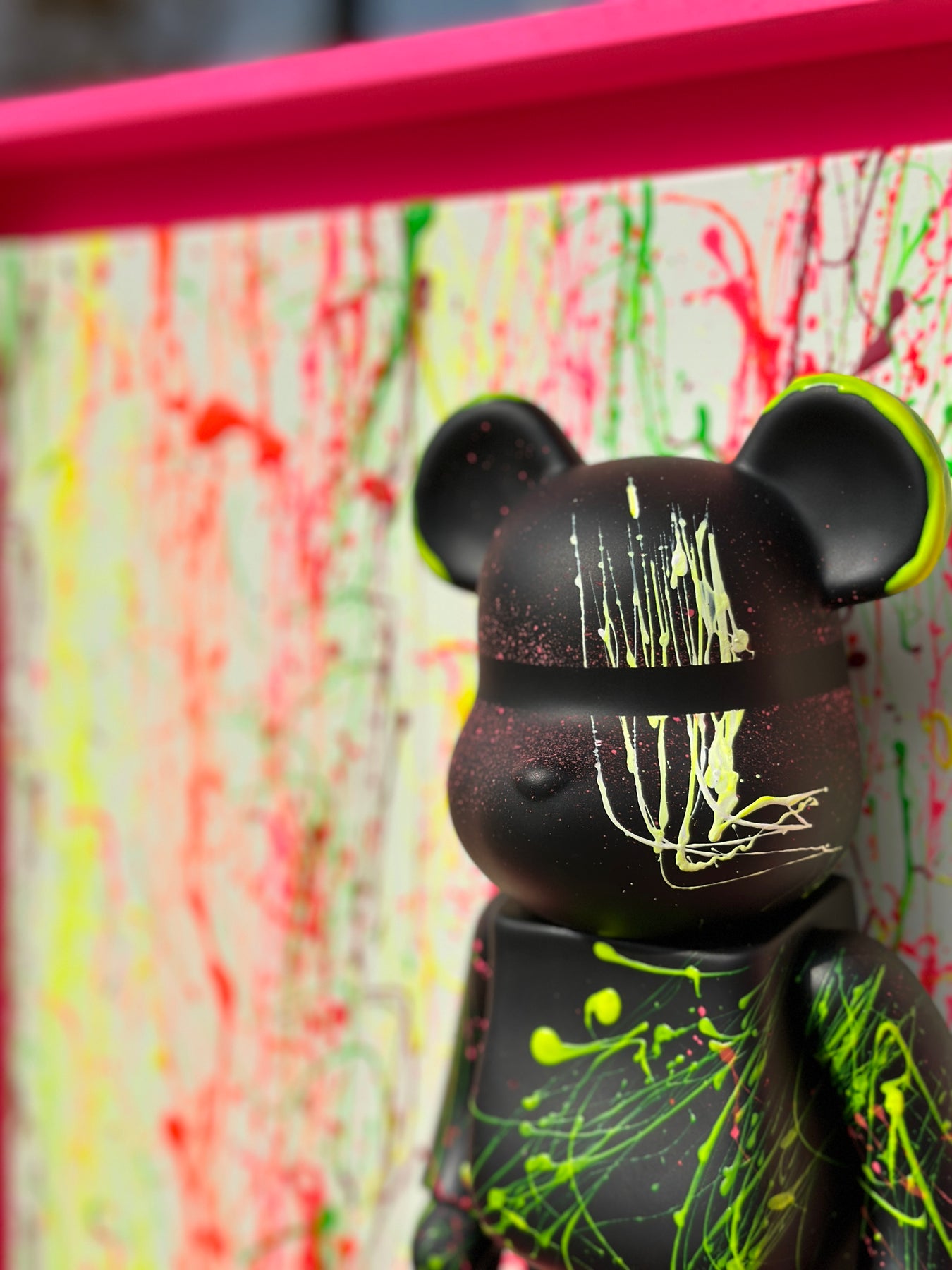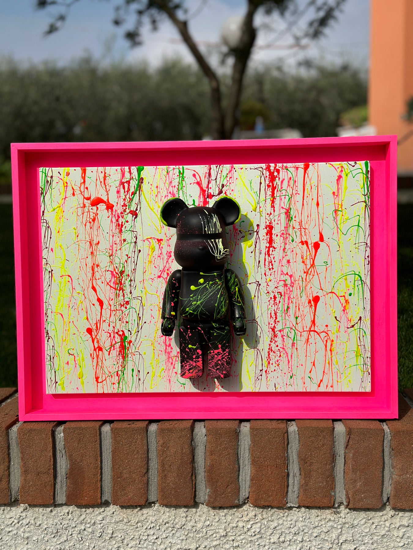 "MENK" quadro UNICO realizzato su tela di cotone fine colori FLUO con l'applicazione di questo Teddy CUSTOM.
