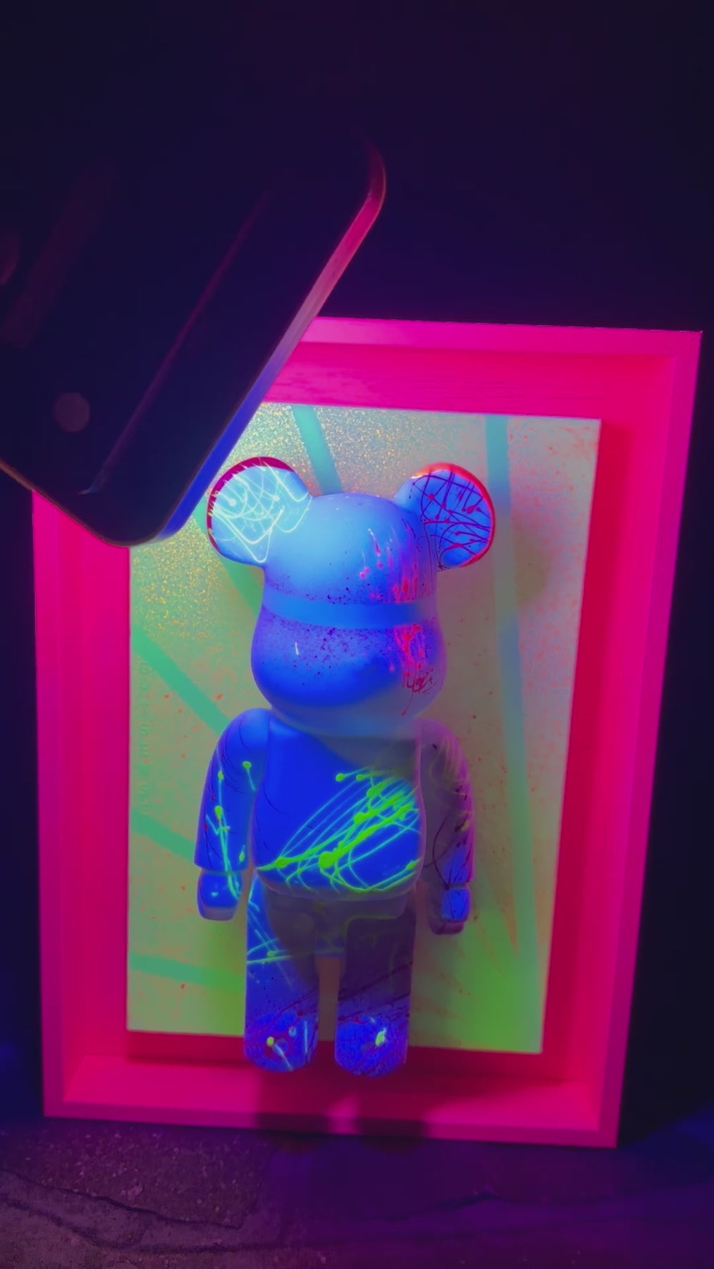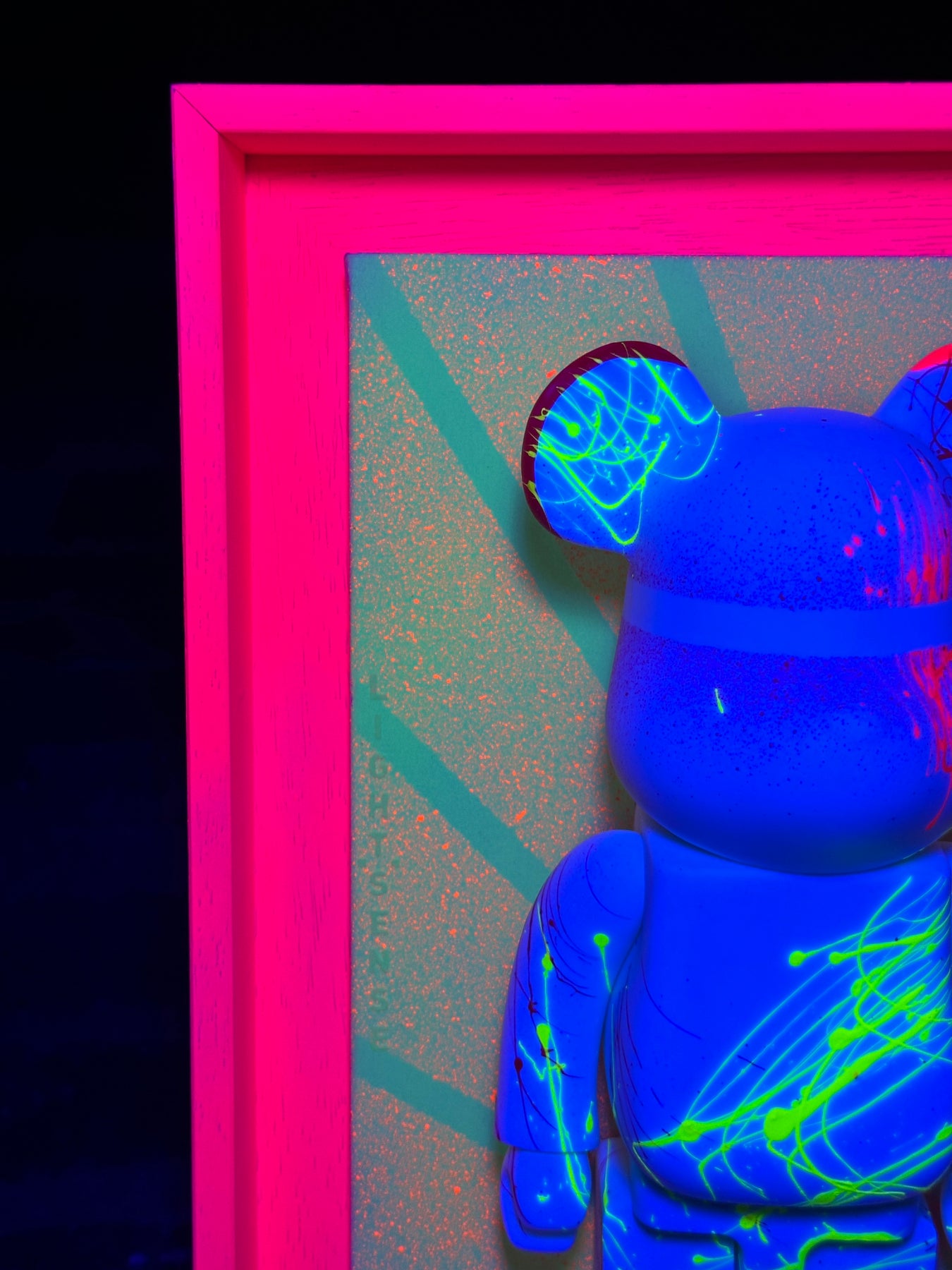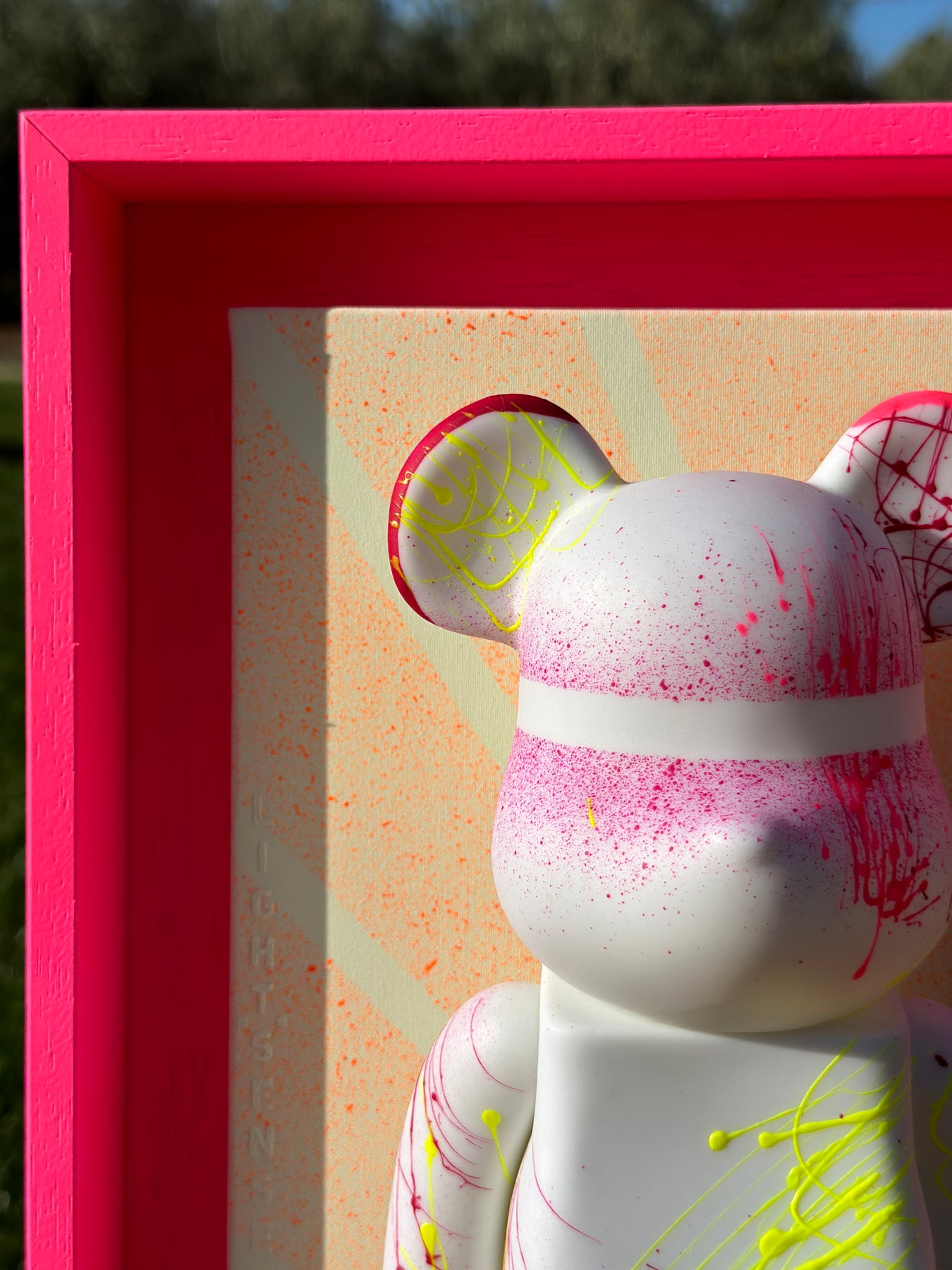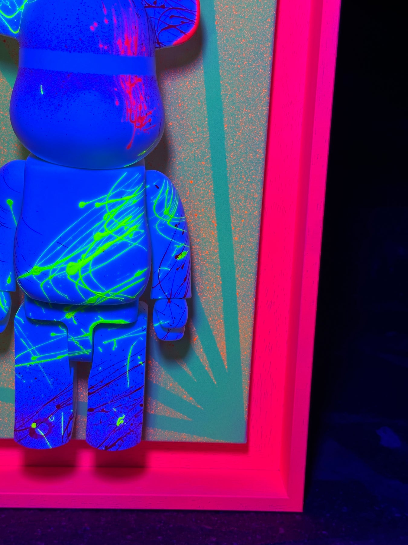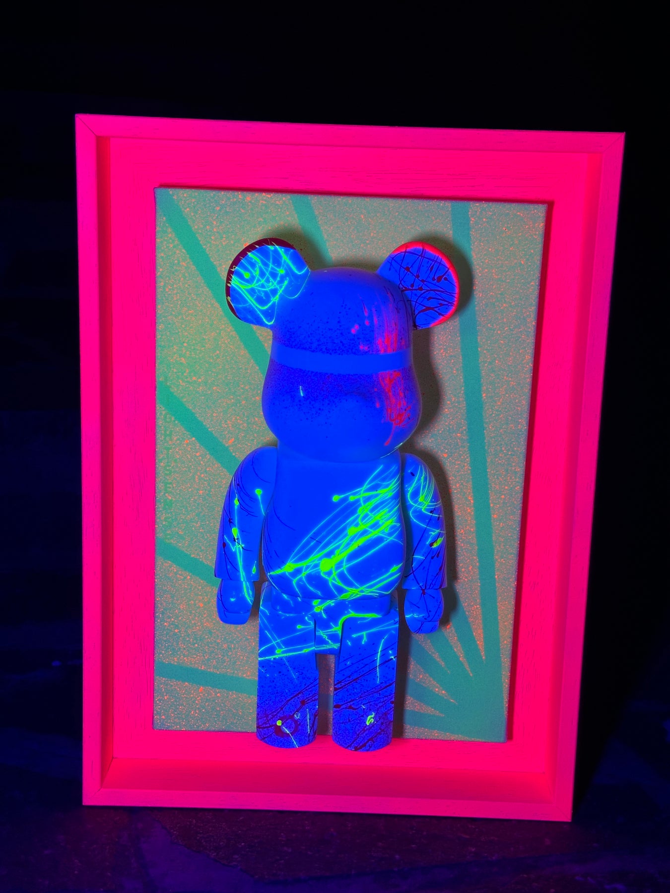 "LELLY" quadro UNICO realizzato su tela di cotone fine colori FLUO con l'applicazione di questo Teddy CUSTOM.