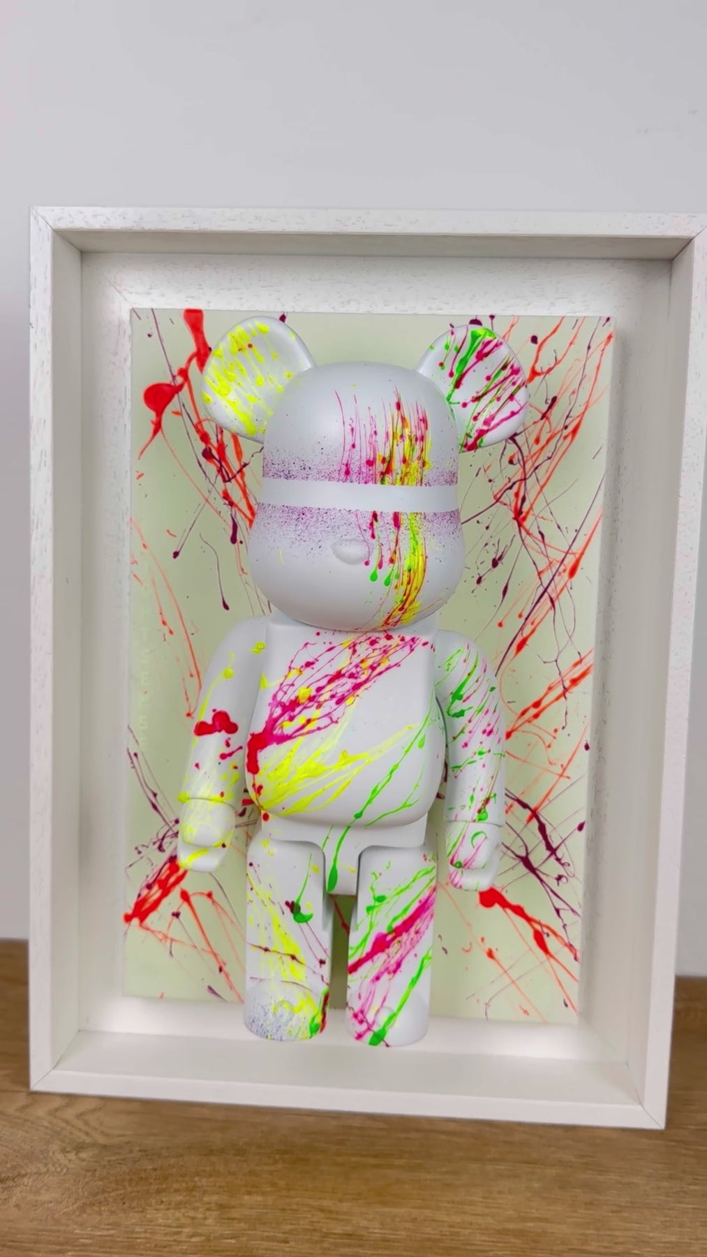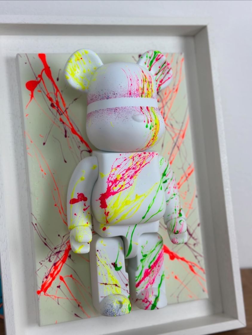 "VSION" quadro UNICO realizzato su tela di cotone fine colori FLUO con l'applicazione di questo Teddy CUSTOM.
